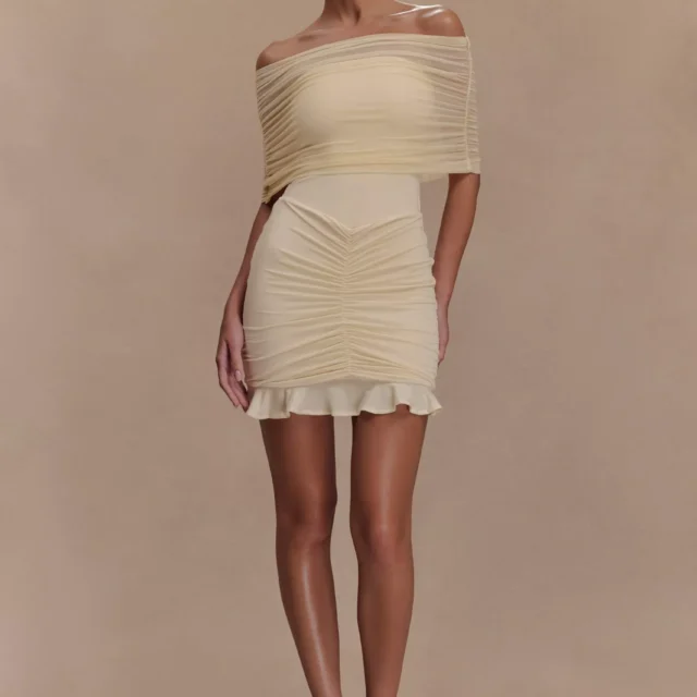 This dress is your go-to option for a wide range of occasions. Whether you’re heading to a chic party, a night out with friends, or a summer evening gathering, its flirty and flattering design will make sure you’re the center of attention. The off-the-shoulder neckline is ideal for showcasing a beautiful necklace or accentuating your favorite accessories. Pair it with heels for a more elevated look or dress it down with sandals for a relaxed, yet stylish vibe.