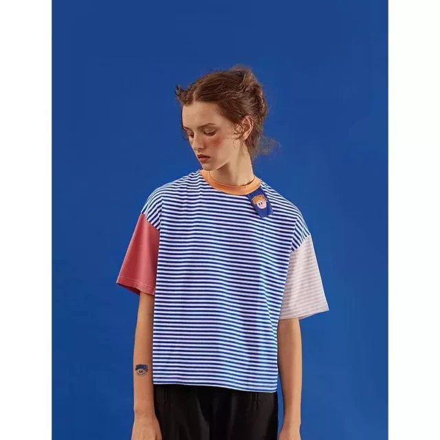 Designed with a relaxed fit that flatters every figure, this T-shirt is your go-to choice for casual outings. The breathable cotton blend ensures comfort, while the spandex provides just the right amount of stretch. Features like the embroidered cartoon patch add a unique flair, making this top anything but ordinary.