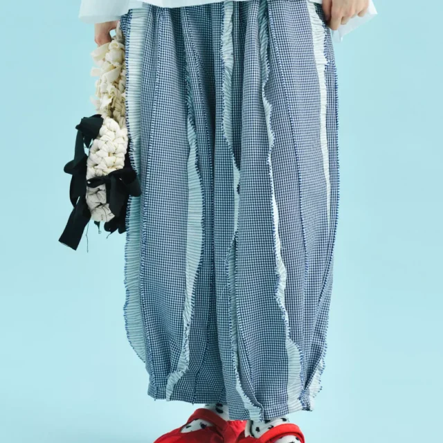 These pants stand out because of their thoughtful design and attention to texture. The soft plaid is brought to life by the raised lace elements, creating visual interest and depth that’s hard to find in ordinary summer wear. They are the perfect piece to transition from casual daytime wear to an evening out with just a change of accessories.