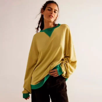 Cozy Patchwork Long-Sleeve Pullover for Women – Loose Knit Autumn Sweater