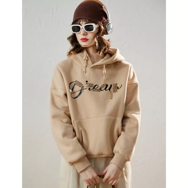 Designed for everyday wear, the Thick Velvet Letter Printed Hoodie is ideal for all your autumn and winter activities. Whether you’re heading out for a coffee date, running errands, or just enjoying a cozy day at home, this hoodie will keep you stylish and comfortable. It’s the perfect blend of fashion and function, making it an essential piece for the season. The soft velvet, combined with the trendy design, ensures you look great no matter where you go.