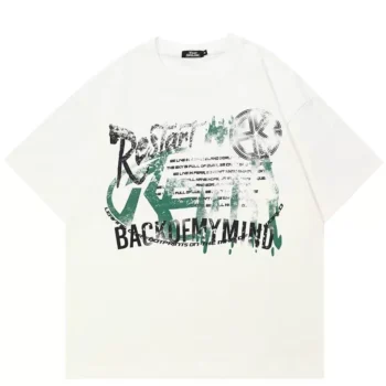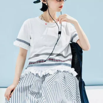 Retro Cartoon Print Cotton Blend Summer Tee for Women – Casual Short Sleeve