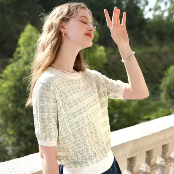 Retro Sheer Mesh Short-Sleeve Crop Top – Breathable & Slim Fit Summer Tee