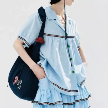 Summer Blue Plaid Short-Sleeved V-Neck Shirt