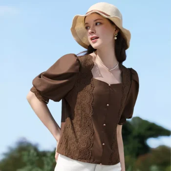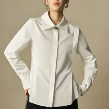 Elegant Egyptian Cotton Long-Sleeved Blouse with Detachable Ribbon