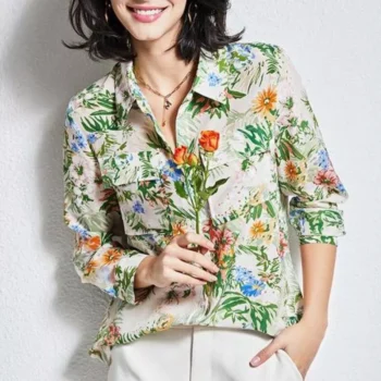 Women’s Chinese Style Silk Satin Round Neck Short Sleeve T-shirt