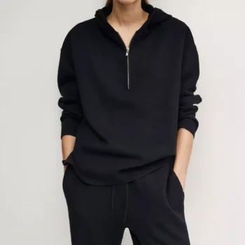 Women’s Casual Knit Hooded Zipper Sweatshirt – Loose Fit, All-Season Style