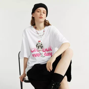 Trendy Summer Ice Cream Cat Print Cotton T-Shirts