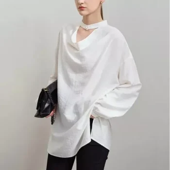 Minimalist Loose-Fit Long Lyocell Shirt – Elegant Casual Blouse for Spring
