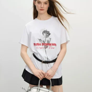 Women’s Rose Print Tencel Cooling Loose-Fit Short Sleeve Summer Tee