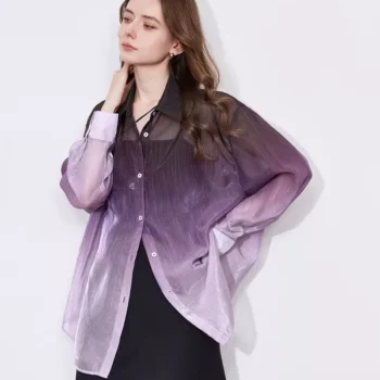 Romantic Purple Gradient Long Sleeve Blouse with Turn-Down Collar