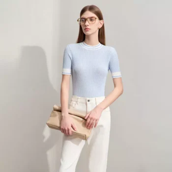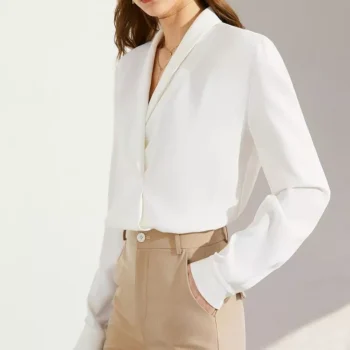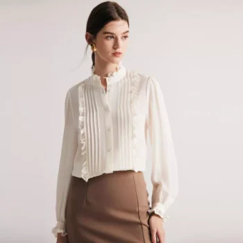 White Silk Blouse with Stand Collar & Ruffles – Chic Office Lady Top