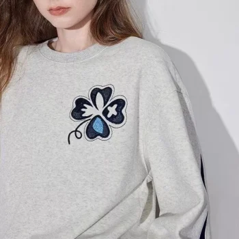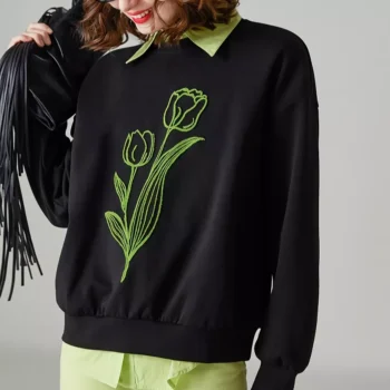 Fashionable Women’s Floral Embroidered Loose Fit Pullover Hoodie