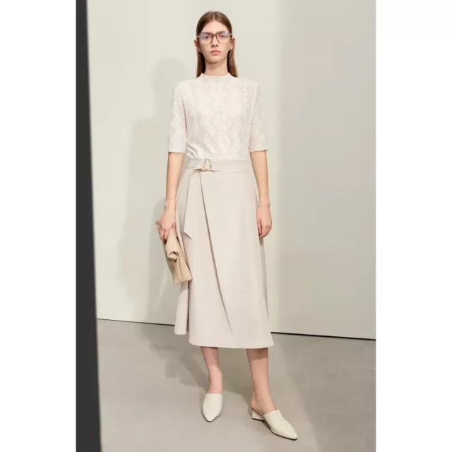 This skirt is not only stylish but also practical. Its loose fit and A-line silhouette make it comfortable for all-day wear, whether you’re in the office or attending a casual event. The non-stretch fabric ensures the skirt maintains its shape, providing a polished look every time you wear it. The geometric buckle belt is a standout feature that adds a modern twist to a classic design, making it easy to pair with a variety of tops and accessories.