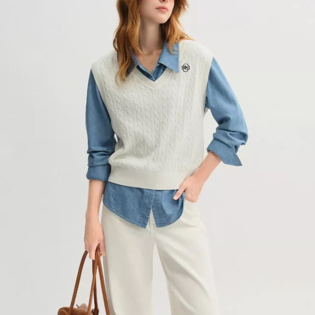 Simple, clean, and effortlessly chic—this white cable knit sweater vest is your go-to layering essential for autumn and winter. With its relaxed fit, sleeveless cut, and timeless V-neck design, it blends cozy texture with everyday sophistication. Whether you’re heading to the office, out for lunch, or lounging at home, this vest offers that polished-yet-comfortable look every modern woman wants.
