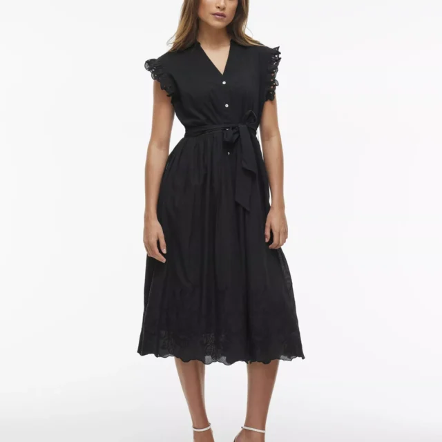 Vila Clothes Women’s Black Cotton Sleeveless V-Neck Dress with Belt