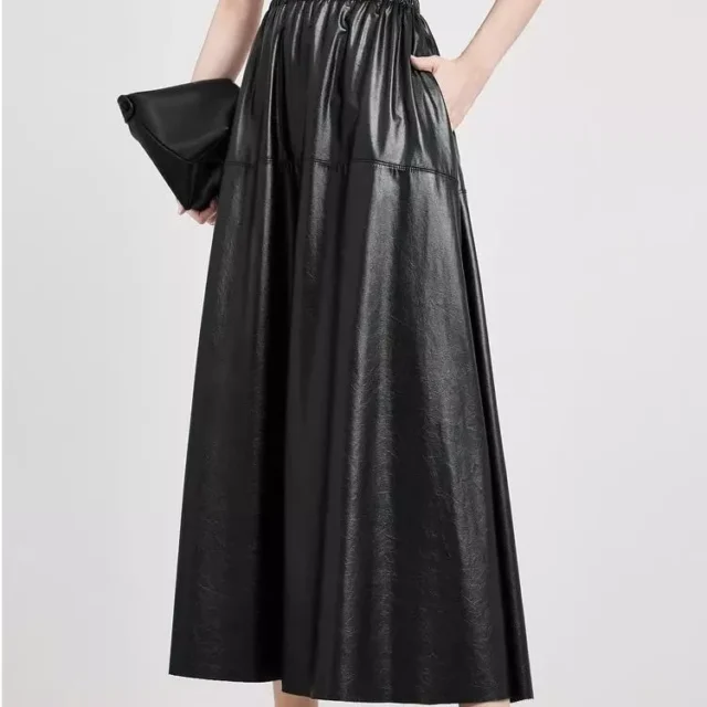 This vintage-inspired skirt features a high-quality faux leather (PU) fabric with a soft, slightly stretchy fit that hugs your waist and flows effortlessly down to your ankles. The elastic waistband provides all-day comfort, while the A-line cut flatters every body shape by offering freedom of movement and a classic silhouette. Thoughtful details like side pockets add practicality without compromising on style.