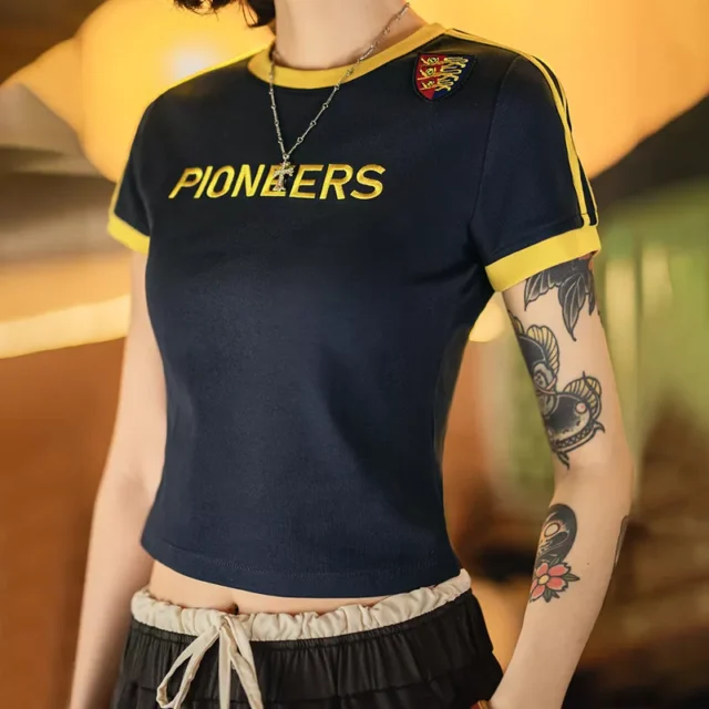 What makes it special? It’s all in the details. From the vintage-inspired color blocks and fine embroidery to the slim, flattering fit — this tee effortlessly blends comfort with contemporary edge. Pair it with your favorite high-waisted jeans, denim shorts, or a flirty skirt for an instantly stylish look.