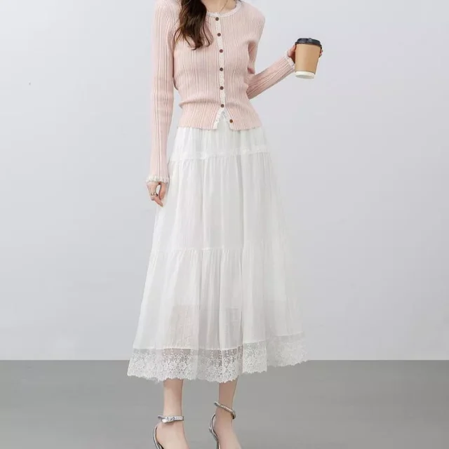 White A-Line Midi Skirt with Lace Details for Women – Perfect for Spring & Summer