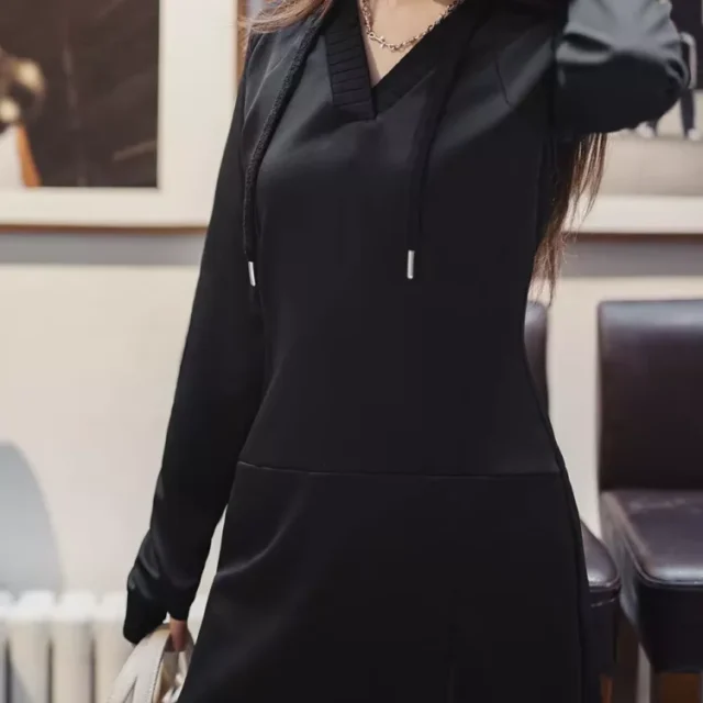 Whether you’re dressing up with heels or keeping it casual with sneakers, this black hoodie dress is the perfect addition to your wardrobe. Its trendy yet comfortable design makes it a go-to choice for fashion-forward women who love effortless style.