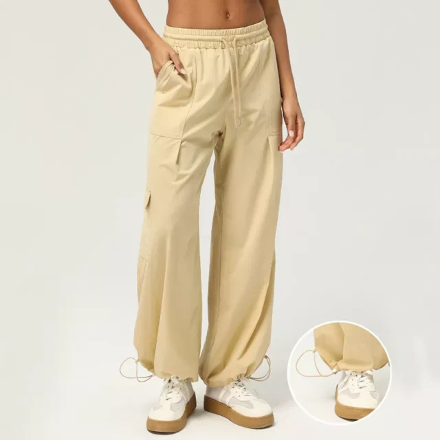 Made with breathable Kam Ammonia material, these pants offer lasting comfort for all-day wear. The full-length design features a drawstring waist for a secure, adjustable fit and utility-style pockets that blend fashion and function. Whether you’re flowing through yoga poses, going for a run, or out on a coffee date, these pants adapt to every scene with ease.