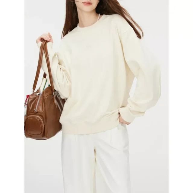 What sets this pullover apart is its combination of simplicity and elegance. The small embroidery design adds a unique touch to the solid beige color, making it stand out without being too flashy. The 100% cotton material ensures that it’s not only stylish but also incredibly comfortable. The drop sleeve design and loose fit provide a relaxed silhouette that’s perfect for everyday wear.