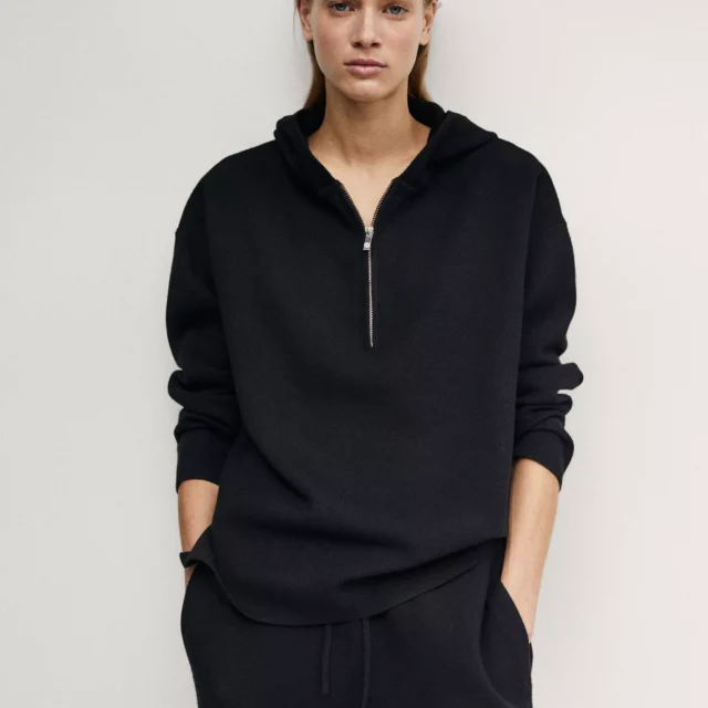This sweatshirt is designed with a slightly loose fit that drapes naturally over your body, offering comfort without compromising on shape. Whether you’re lounging at home, running errands, or meeting friends for coffee, this stylish knit hoodie keeps your look effortlessly polished. The solid color design and clean lines make it easy to layer with your favorite jeans, leggings, or skirts — a true go-to for any casual outfit.