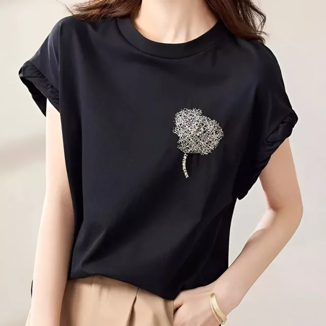 What makes this tee special is its balance of comfort and understated style. The knitted cotton texture and folded details give it a subtle upgrade from the usual basics. It’s not just another black tee — it’s a versatile fashion essential designed for women who appreciate simplicity with a touch of sophistication.
