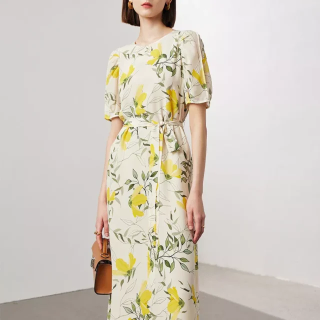 Crafted from 100% real mulberry silk, this dress offers a soft, lightweight feel that keeps you cool and comfortable in warm weather. The breathable natural fiber allows for excellent airflow, making it a must-have for the season. The A-line silhouette gracefully enhances your figure, while the adjustable sash cinches at the waist for a flattering, customizable fit.