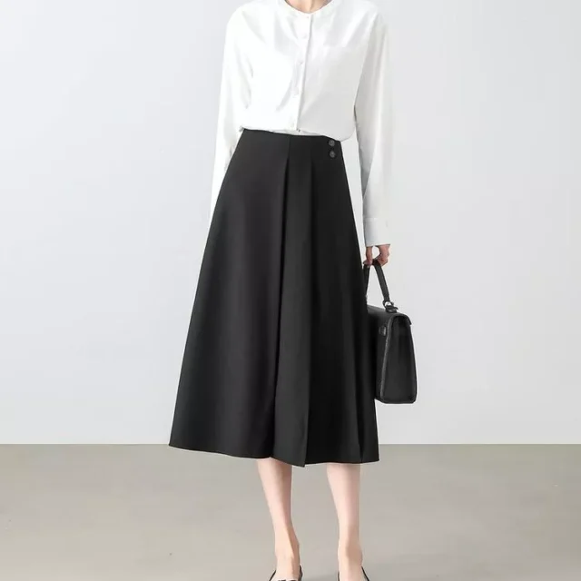 This midi skirt is an essential addition to your wardrobe for a multitude of reasons. The breathable fabric and slight stretch make it incredibly comfortable for daily wear. The high-waisted, A-line design flatters every figure, while the elegant pleats give it an elevated, vintage-inspired look. Whether you’re dressing for a professional setting or a casual day out, this skirt is versatile enough to pair with both blouses and casual tops. Its solid color allows for easy mixing and matching with your favorite accessories.