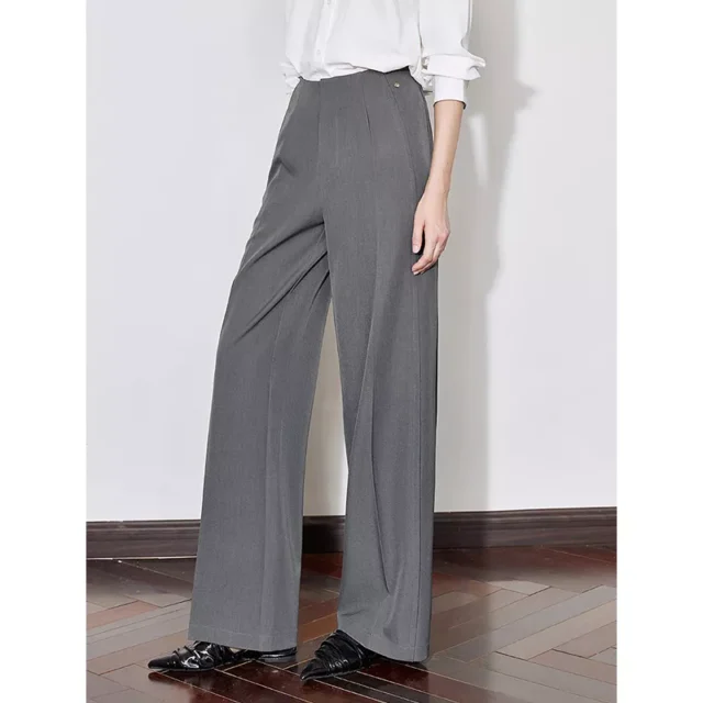 Step into effortless style and all-day comfort with these high-waist wide-leg trousers, designed for the modern woman who values sophistication and ease. Featuring a sleek straight-leg cut, these pants offer a relaxed yet polished look that complements any outfit. The versatile gray shade makes them a must-have staple for your fall and winter wardrobe, perfect for work, casual outings, or evening plans.