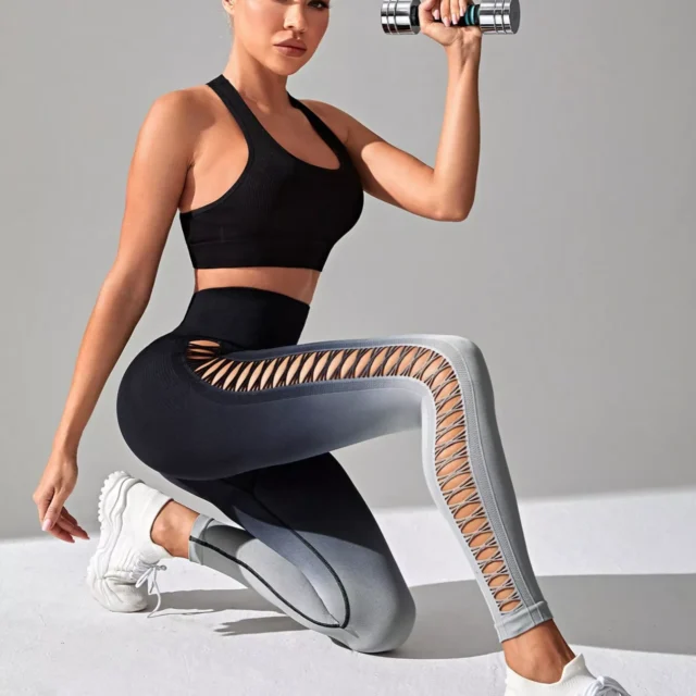 Women’s High-Waisted Ombre Yoga Pants with Hollow Side Design