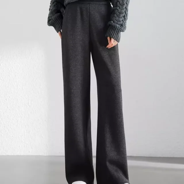 These winter knit pants are more than just a pair of pants—they’re an investment in your comfort and style during the colder seasons. With their medium stretch and flattering high-waisted fit, they offer a relaxed yet put-together look that works for any casual occasion. The breathable wool blend fabric keeps you warm while still being lightweight enough for everyday wear. The pleated front adds an elegant touch, making these pants a standout piece in your wardrobe. Plus, the elastic waistband ensures a comfortable, stay-in-place fit without any fuss.