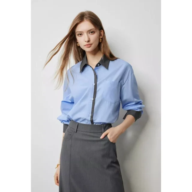 What sets this blouse apart is its masterful blend of comfort and contemporary design. The color-blocking pattern draws the eye, making it a standout piece in any wardrobe. The polo neck and straight-cut silhouette add a touch of sophistication, while the loose fit and breathable midweight fabric ensure all-day comfort. Practical pockets and thoughtful detailing make it both stylish and functional for daily wear.