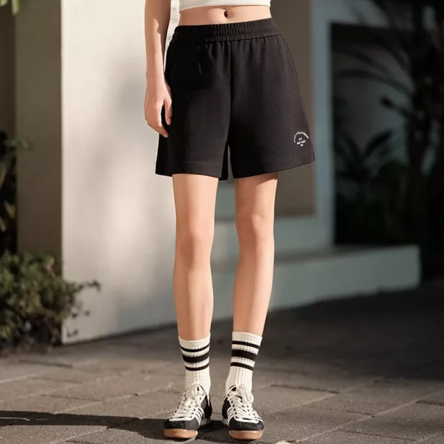 Crafted from a breathable blend of cotton and polyester, they offer a soft, smooth texture that feels great against the skin. The loose fit allows for plenty of movement, while the mid-rise elastic waistband provides a flattering fit for all-day wear. Delicate embroidery paired with subtle side splits adds a modern edge to the clean, simple silhouette. Designed with practicality in mind, these shorts also feature handy pockets to keep essentials close.