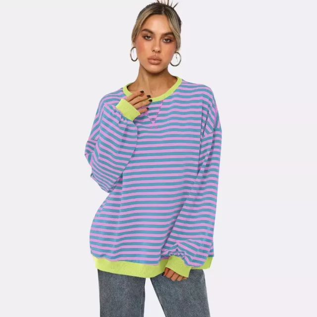 Women’s Patchwork Striped Loose Sweatshirt – Autumn Fashion Casual Pullover