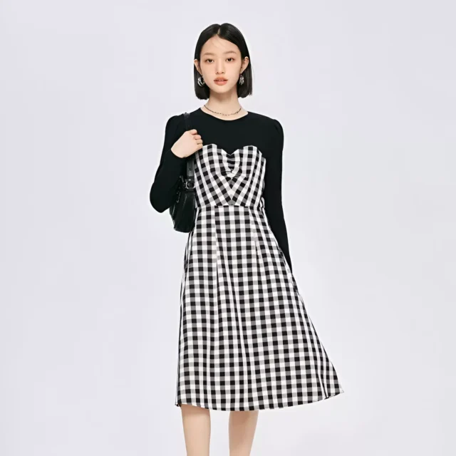 Whether you’re heading to the office, a weekend brunch, or a formal event, this plaid splice midi dress will have you looking effortlessly stylish. Pair it with ankle boots for a chic autumn look or dress it up with heels for an elegant evening ensemble.