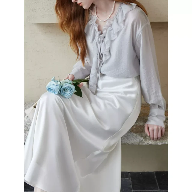 Step into refined style with this stunning Women’s Ruffled V-Neck Vest and Blouse Set. Crafted for the modern woman, this set offers a perfect blend of sophistication and comfort, making it an ideal choice for both office wear and casual outings. The soft grey color exudes a timeless appeal, while the loose fit and drop sleeves ensure effortless elegance.