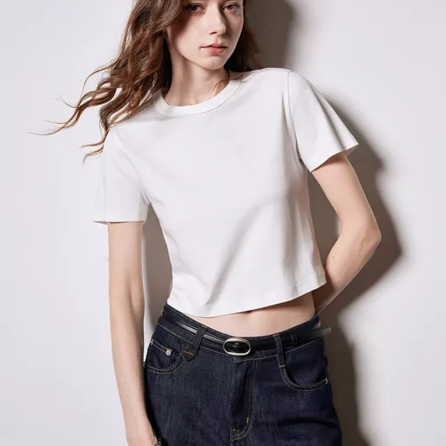 The solid color design and minimalist style make it highly versatile, allowing you to pair it with everything from trousers to skirts, or even your favorite denim jeans. It’s easy to dress up with accessories or keep it casual for everyday wear. With the classic O-neck collar and short sleeves, this T-shirt offers the right balance of elegance and comfort—just what you need for your spring and summer wardrobe.