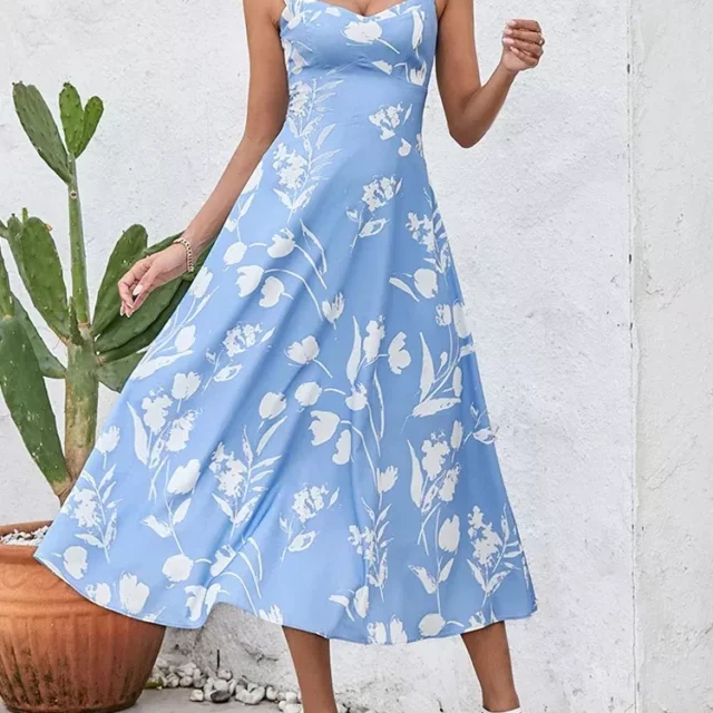 Make your summer unforgettable with this stunning sleeveless V-neck print midi dress. Designed for women who love fashion and comfort, this backless beauty is everything you need for warm-weather getaways, garden parties, brunch dates, or dancing under the stars. With a flattering A-line silhouette and vibrant prints, this dress is your new go-to for effortless elegance.