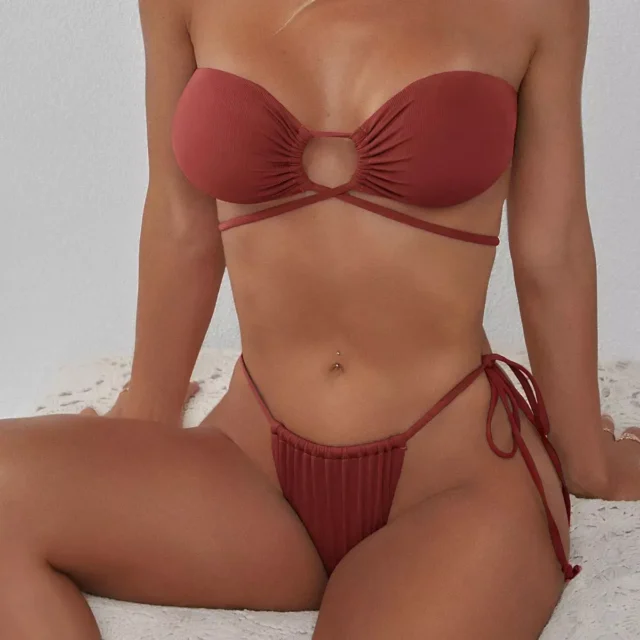 Make a splash this season with the ultimate beach-ready look. Our Women’s Strapless O-Ring Bikini Set is designed for confident, carefree summer days. With a sultry bandeau top featuring an eye-catching O-ring detail and adjustable tie-side bottoms, this two-piece swimsuit brings together comfort, fit, and fashion. Whether you’re lounging by the pool, heading to a beach party, or catching waves, this bikini is your go-to for all warm-weather adventures.