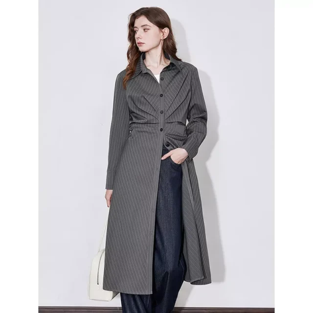 • Single-Breasted Button Closure: Functional buttons that enhance the dress’s classic aesthetic.