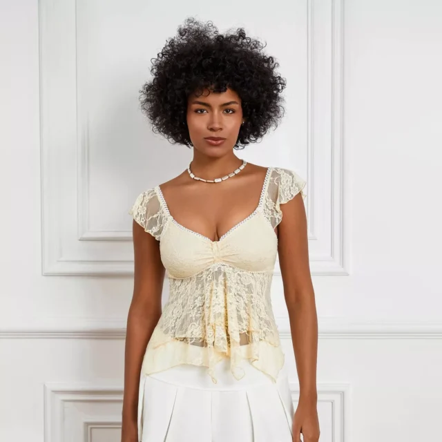 Get ready to own your summer look with this stunning Women’s V Neck Lace Crop Top. Designed to make a statement, this stylish vest top features elegant flying sleeves, a deep V neckline, and soft lace detailing that adds a touch of femininity. Its double-layered lotus edge creates a playful, flirty silhouette that’s both trendy and timeless. Whether you’re heading to brunch, hitting a festival, or strolling the boardwalk, this crop top gives you a confident, fashion-forward look with minimal effort.