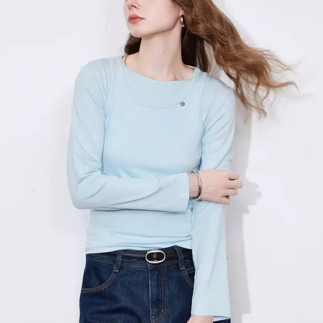 This top is not just about style; it’s designed to make dressing up effortless. Its regular fit ensures a comfortable feel, while the O-neck collar adds a classic and flattering touch. The full-length sleeves provide just the right amount of coverage, making it an excellent choice for spring weather. Pair it with jeans, tailored pants, or skirts for a fashionable and refined outfit.