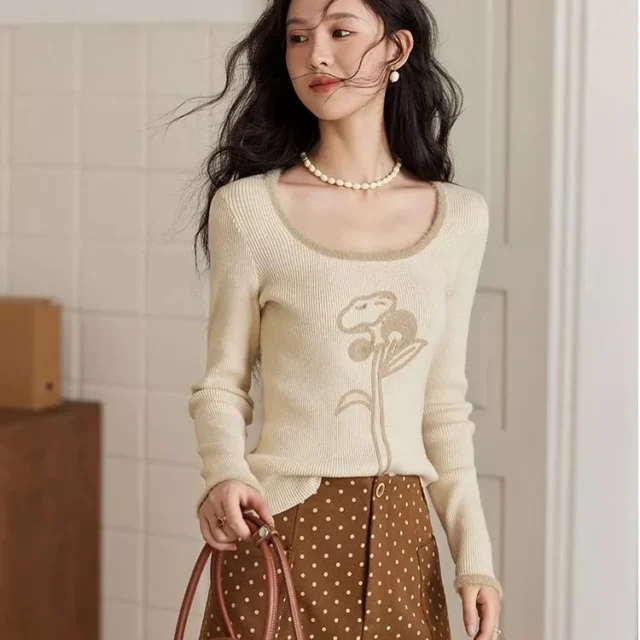 Chic Retro Style with the U-Collar Embroidered Sweater