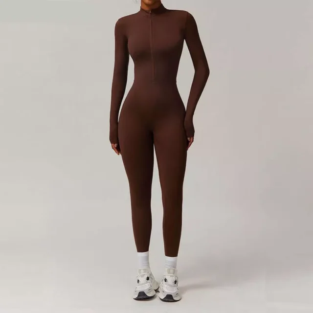 Women’s Winter Yoga Boilersuit Long-Sleeve Zipper Jumpsuit