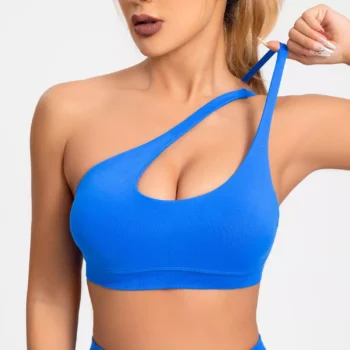 Asymmetric High Support Backless Sports Bra for Women – Seamless Halter Gym Top