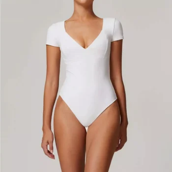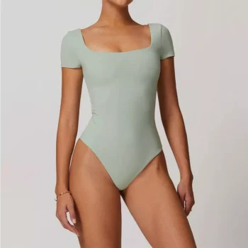 Women’s Seamless Workout Jumpsuit – Short Sleeve Fitness Romper