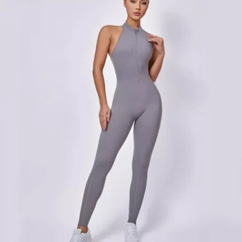 Women’s Zipper Yoga Jumpsuit – Backless Sleeveless Bodysuit