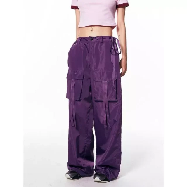 What makes our parachute sweatpants special is the harmonious blend of style, comfort, and functionality. The oversized fit caters to a relaxed yet chic look, while the strappy details and vintage accents like buttons and fake zippers add an edge to your outfit. The cargo pockets are not just decorative; they add practicality to your everyday wear.